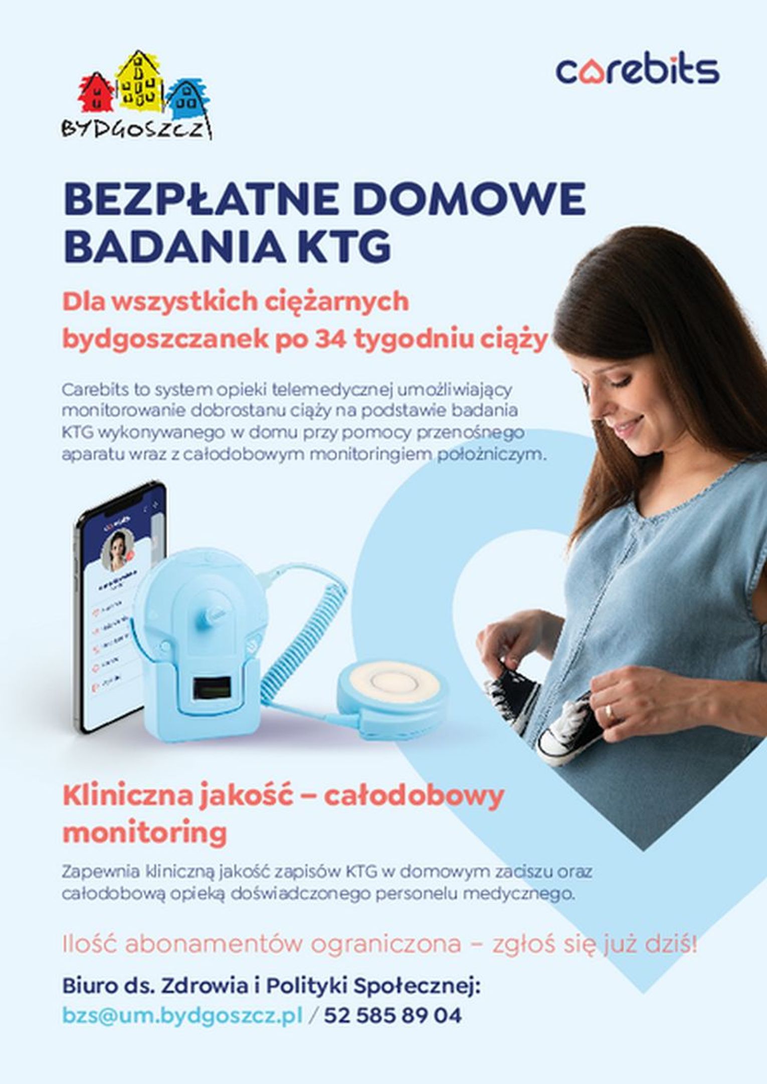 Bydgoszcz zdecydowała o kontynuacji programu bezpłatnych domowych badań kardiotokograficznych (KTG) dla kobiet w ciąży. Usługa, wprowadzona po raz pierwszy w 2022 roku, od samego początku spotkała się z dużym zainteresowaniem ze strony przyszłych mam, dlatego prezydent Rafał Bruski podjął decyzję o dalszym finansowaniu i udostępnianiu tej formy opieki prenatalnej. Kardiotokografia monitoruje pracę serca płodu oraz czynności skurczowe macicy.
