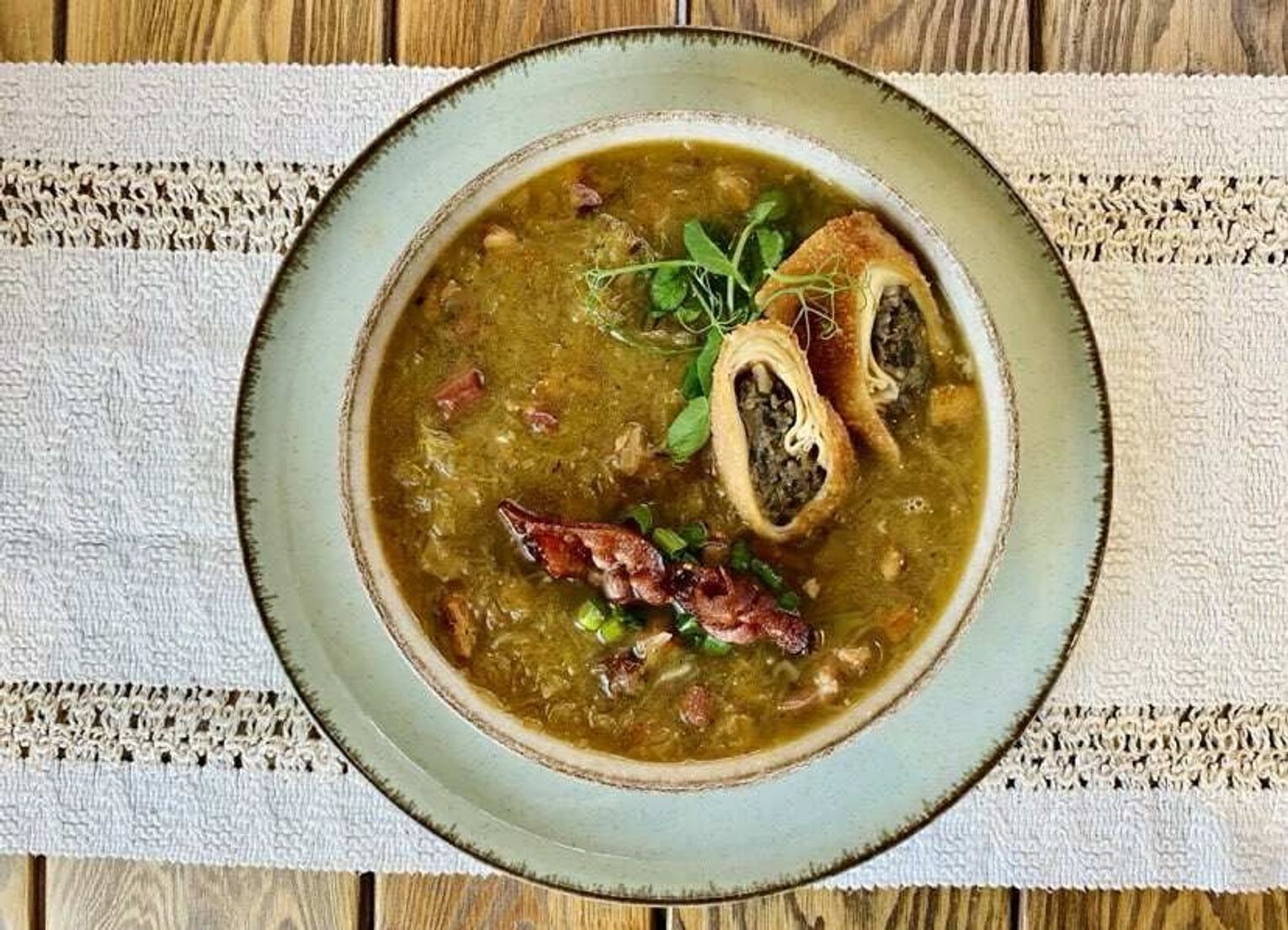 A teraz, zgodnie z rekomendacją Foodies przemieszczamy się na ul. Konną 10, do miejsca, które zachwyca nie tylko widokiem, ale przede wszystkim wyrafinowaną kuchnią. Vidok to restauracja, w której każdy posiłek staje się małym dziełem sztuki – pełnym aromatów, kolorów i zaskakujących połączeń. Tu klasyczne techniki kulinarne spotykają się z nowoczesną fantazją, a efektem są dania, które pamięta się długo po wyjściu. Specjalnie na Festiwal Chef przygotował dwie wyjątkowe propozycje. Menu A rozpoczyna się od intensywnego w smaku bulionu grzybowo-gęsiego z ravioli z ossobuco, podanego z chutneyem pomidorowym i smażonymi shimeji. W daniu głównym króluje risotto z szarpaną kaczką, z purée z modrej kapusty, edamame i pudrem z buraka. Deser to finezyjne crème brûlée o smaku rokitnika, wzbogacone sorbetem porzeczkowym i ciastkiem cygaretkowym. Menu B to z kolei gra smaków i faktur: carpaccio z dyni piżmowej z gorgonzolą i chipsem z pietruszki, delikatny karmazyn z emulsją ze skorupiaków i ziemniakami Hasselback, a na koniec subtelny Sea Buckthorn Curd z włoską bezą i cytrynowym akcentem.