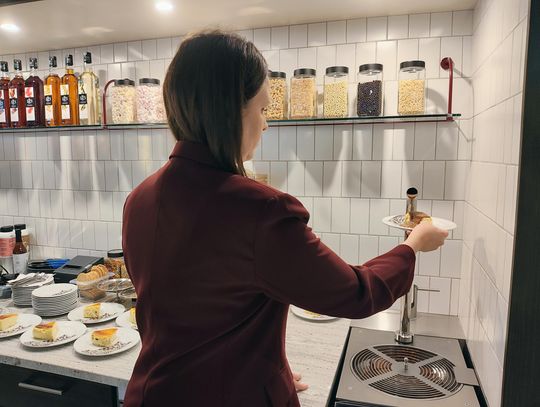 Jednym z najbardziej innowacyjnych rozwiązań w modernizowanym lokalu jest pierwsza w sieci Cukierni Sowa strefa samoobsługowa. To nowoczesne udogodnienie powstało z myślą o klientach, którzy chcą w szybki i wygodny sposób zakupić na wynos słodką czy wytrawną przekąskę oraz napić się aromatycznej kawy z lokalnej palarni Sowa Caffè – bez konieczności oczekiwania w kolejce. Dodatkowym udogodnieniem, które wprowadzono w nowo otwartym lokalu, jest interaktywny kiosk do składania zamówień na miejscu. To rozwiązanie znane i cenione zwłaszcza przez młodszych konsumentów – pozwala złożyć zamówienie intuicyjnie i bez kolejki, zyskując czas i pełen komfort.