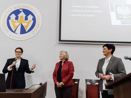 Podczas wykładu "Wszystko, co chciał(a)byś wiedzieć o służbie cywilnej, ale boisz się zapytać", uczestniczki i uczestnicy mogli dowiedzieć się jak wygląda praca w administracji publicznej od środka, jakie możliwości rozwoju daje służba cywilna oraz jak rozpocząć karierę w Kujawsko-Pomorskim Urzędzie Wojewódzkim lub innych urzędach, które wchodzą w skład służby cywilnej.