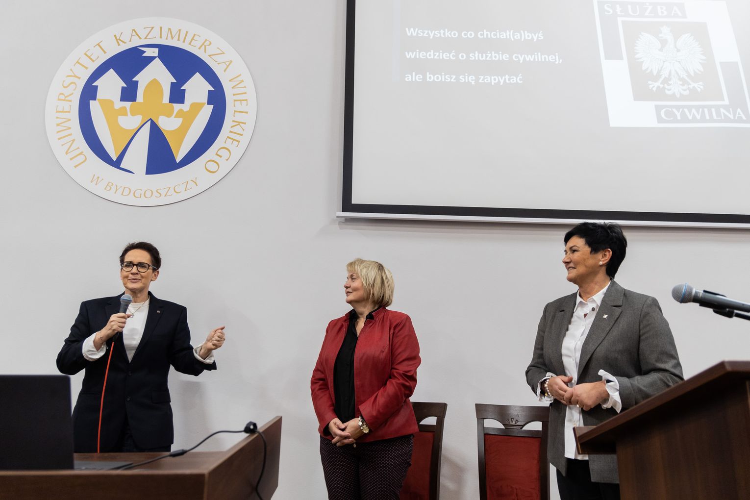 Przy okazji wizyty Szefowa Służby Cywilnej Minister Anita Noskowska-Piątkowska spotkała się ze studentami Wydział Prawa i Ekonomii Uniwersytetu Kazimierza Wielkiego.