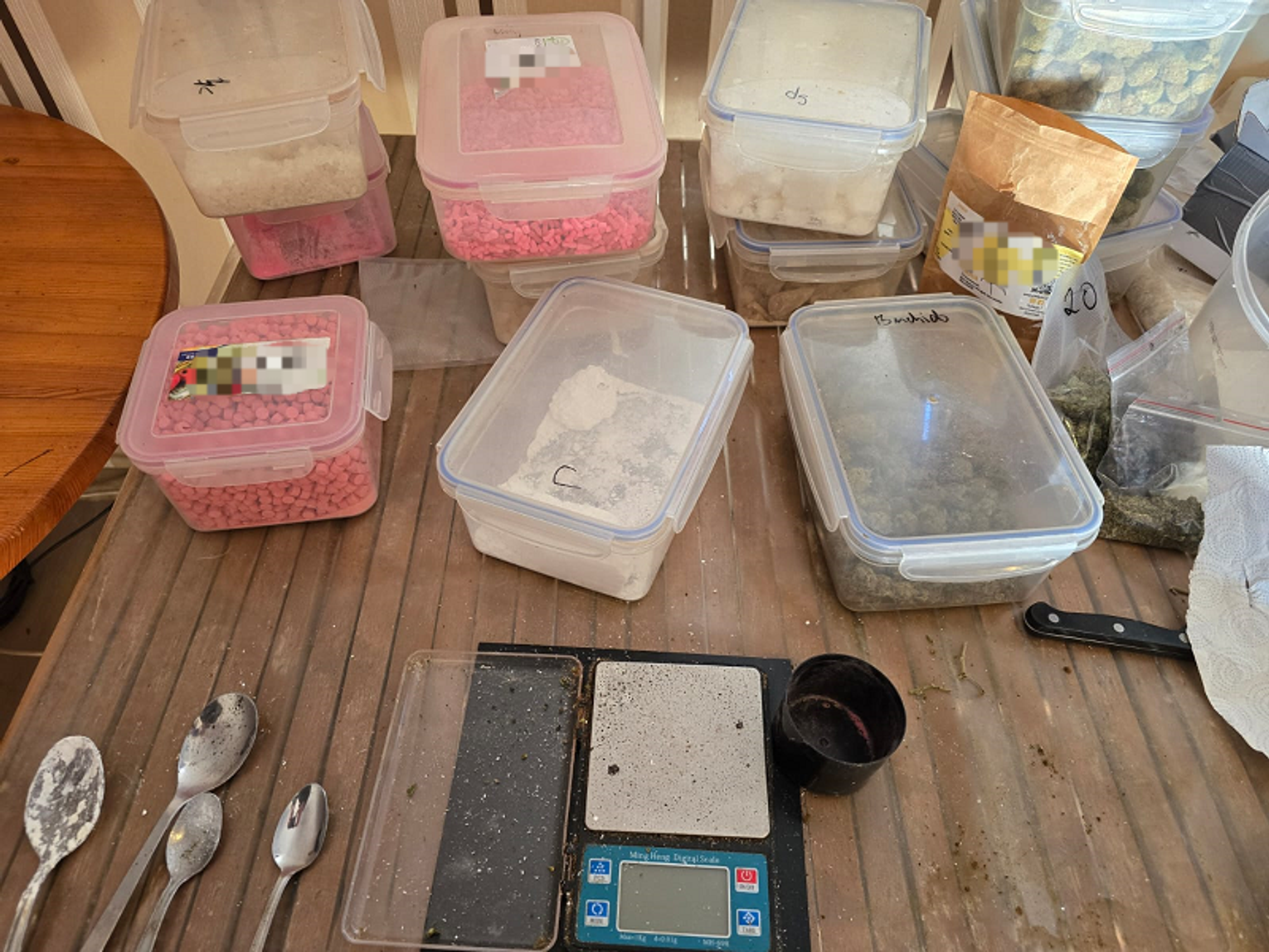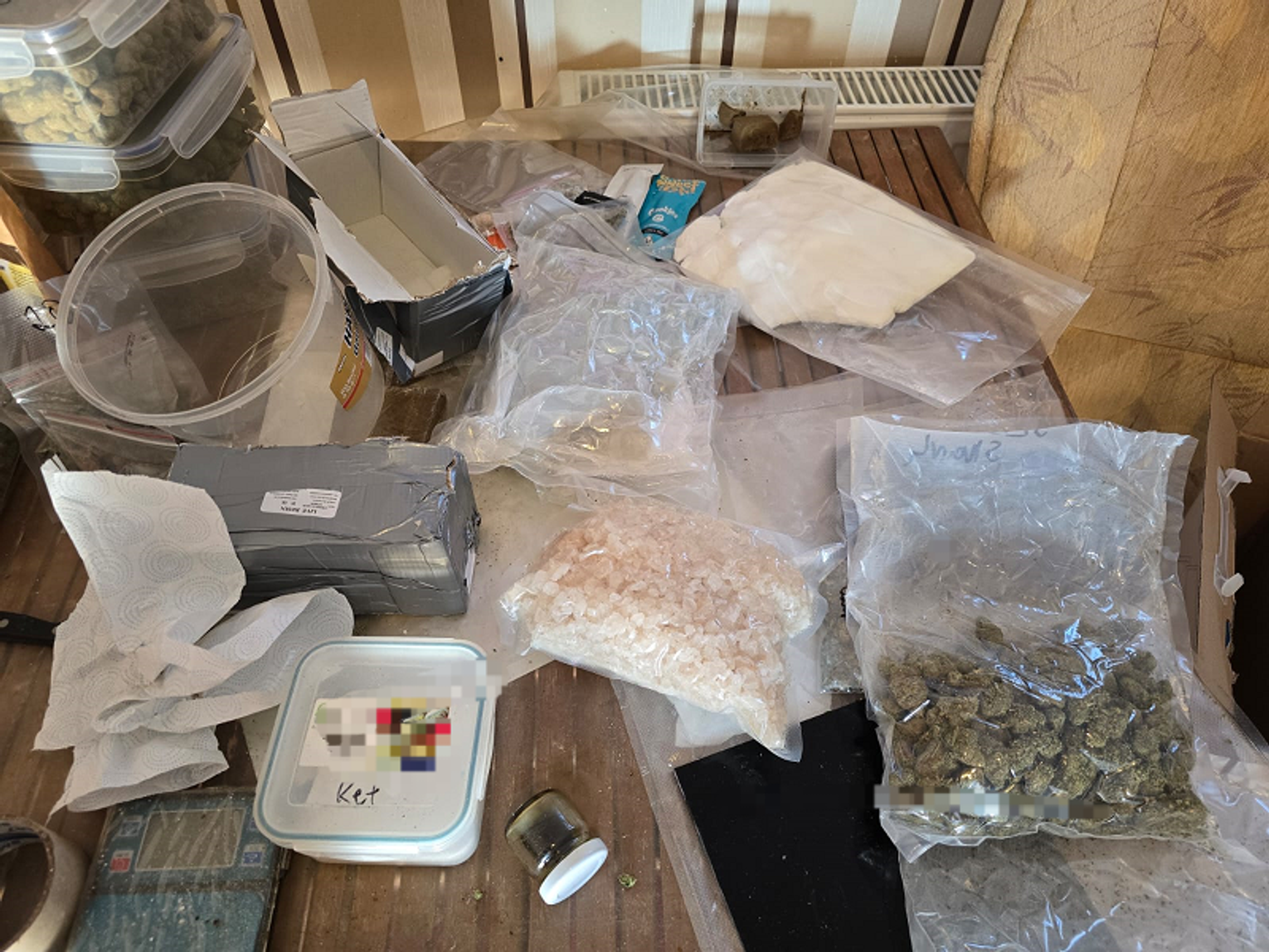 Po przejęciu przesyłek, policjanci pojechali do miejsca zamieszkania 44-latka. Ostatecznie w paczkach oraz w jego domu, zabezpieczyli ponad kilogram suszu roślinnego, ponad 6 kg zbrylonej substancji krystalicznej i ponad 50 000 tabletek extasy. Wstępne testy wykazały, że wszystkie zabezpieczone substancje to narkotyki. Wkrótce będą one poddane szczegółowym badaniom w policyjnym laboratorium.