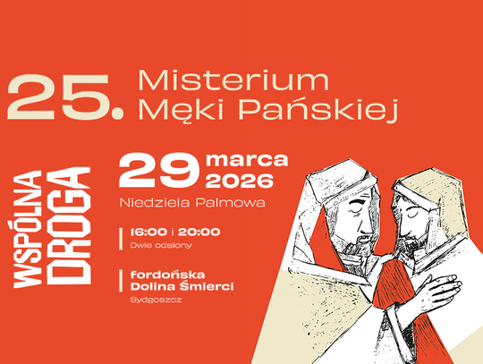 W Niedzielę Palmową, 29 marca 2026 roku, fordońska Dolina Śmierci ponownie stanie się sceną jednego z najważniejszych religijnych i społecznych wydarzeń regionu — 25. Misterium Męki Pańskiej. Tegoroczna edycja nosi tytuł „Wspólna droga” i, zgodnie z tradycją, połączy biblijny przekaz z refleksją nad współczesnymi problemami, kierując do widzów zaproszenie do pamięci i solidarności. Historia fordońskiego Misterium sięga 2001 roku. Od pierwszego przedstawienia wydarzenie zyskało stałe miejsce w kalendarzu bydgoskich obrzędów wielkanocnych, przyciągając co roku tłumy wiernych, pielgrzymów i mieszkańców. Każde Misterium bazuje na nowym, autorskim scenariuszu, dlatego spektakle, choć osnute wokół tej samej opowieści o Męce, Śmierci i Zmartwychwstaniu Jezusa, za każdym razem oferują odmienną interpretację i aktualne odniesienia. Miejsce inscenizacji — Dolina Śmierci — nadaje wydarzeniu szczególną wagę. W tym miejscu, w okresie od 10 października do 26 listopada 1939 roku, hitlerowscy okupanci rozstrzelali około 1200 Polaków i Żydów.