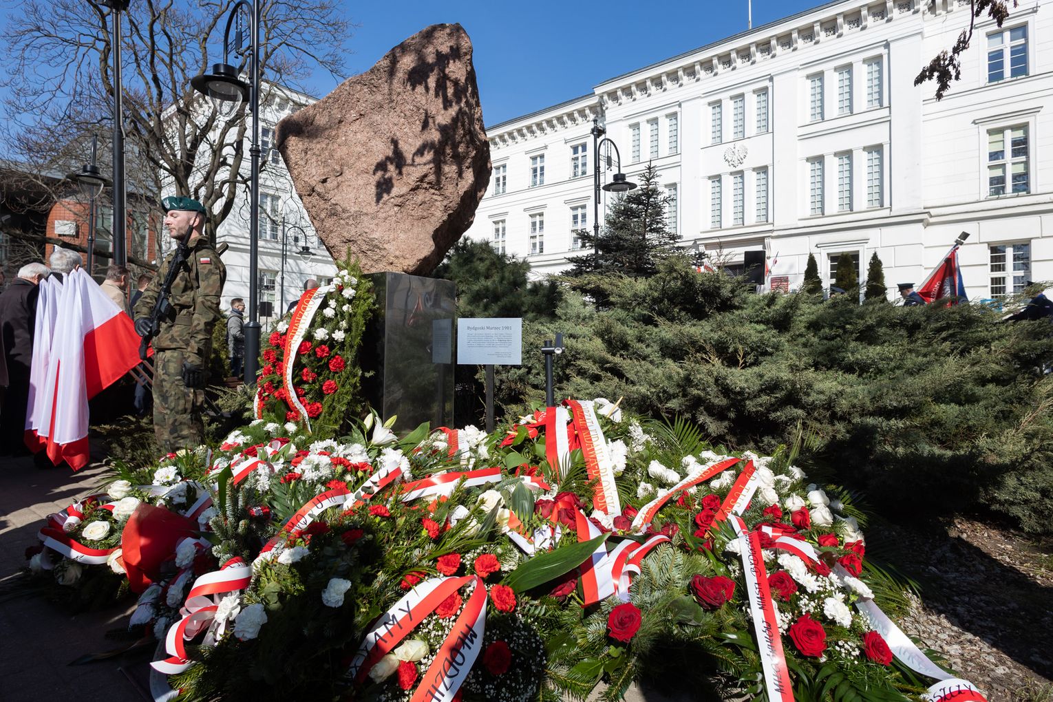 Główna część obchodów rozpoczęła się przed budynkiem Kujawsko-Pomorskiego Urzędu Wojewódzkiego, w miejscu, gdzie 45 lat temu historia Polski nabrała gwałtownego przyspieszenia. To właśnie tutaj, 19 marca 1981 roku, podczas sesji Wojewódzkiej Rady Narodowej, działacze NSZZ „Solidarność” oraz rolnicy domagający się rejestracji swojego związku zostali brutalnie potraktowani przez ówczesne władze.